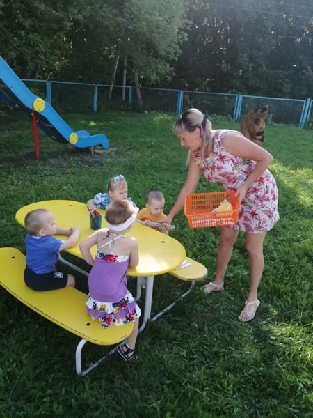 Дети вспомнили и закрепили режимные моменты. Вытаскивая из корзины предметы личной гигиены, объясняли для чего нужен тот или иной предмет. После чего "ходили" в магазин за продуктами, где учились различать полезную еду от вредной.