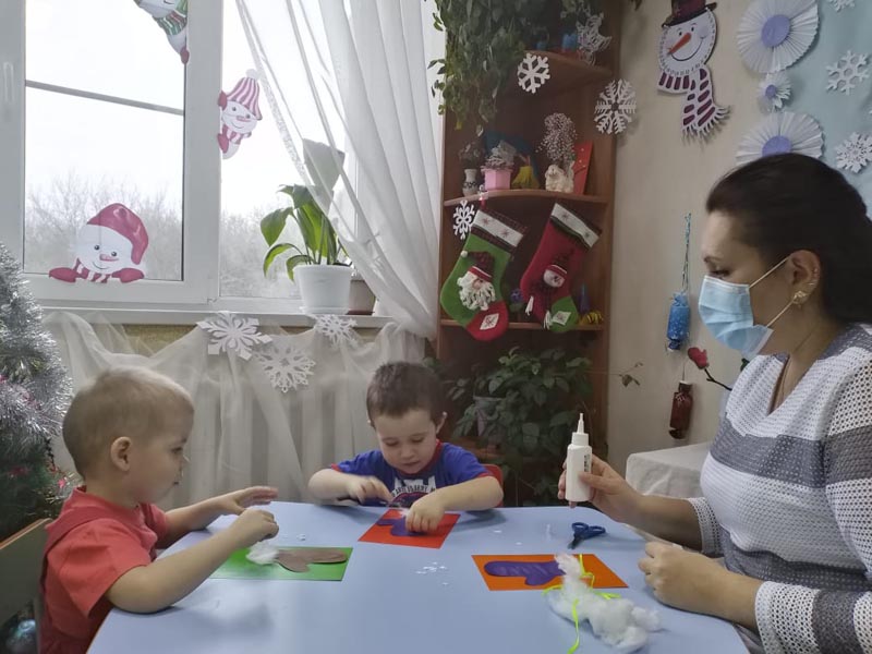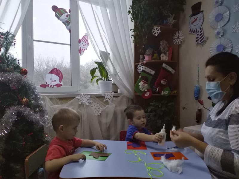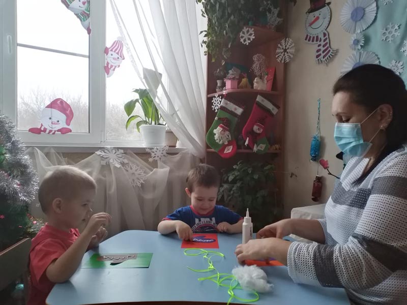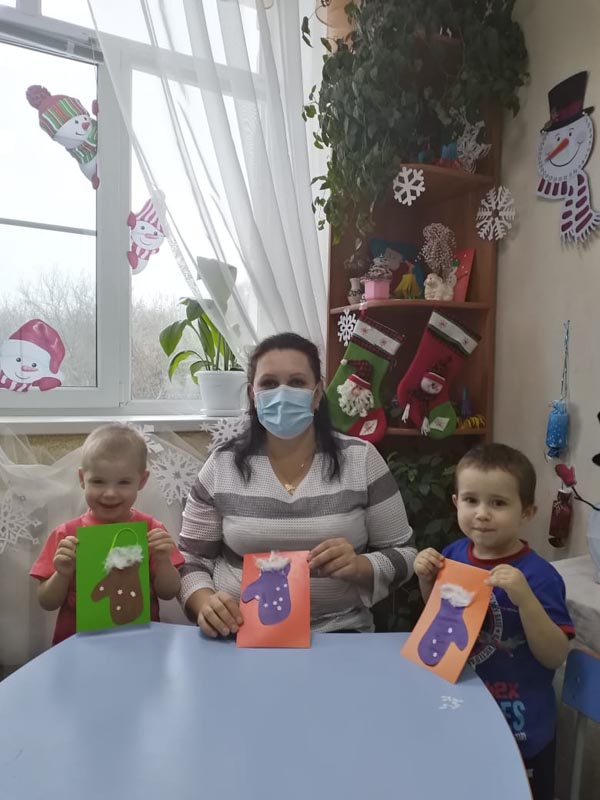 Думали, что ему подарить? И решили, что лучший для него подарок - новые варежки, чтобы не замёрз. Дети старательно и аккуратно готовили сюрприз.