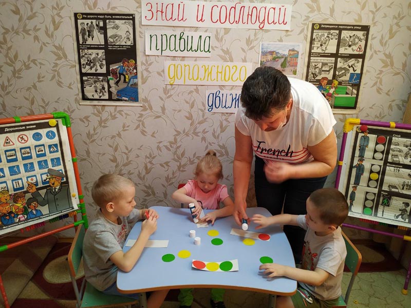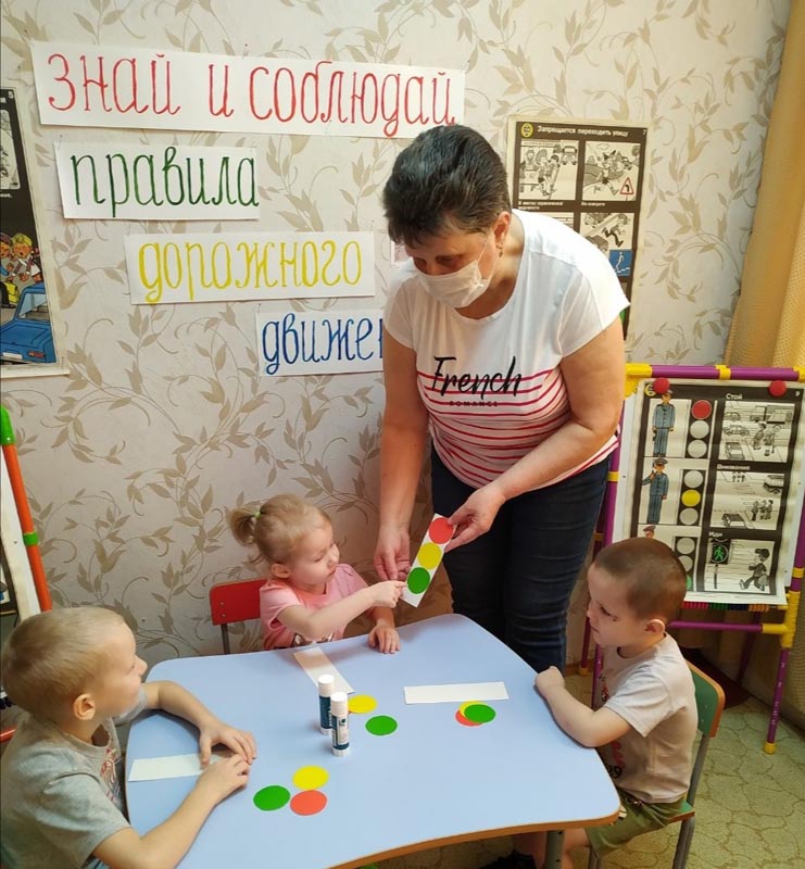 Об этом и шла речь на занятии, которое провела Флерчук И. А.. Ирина Анатольевна постаралась довести до сознания детей необходимость соблюдения правил дорожного движения, обратила внимание воспитанников на культуру поведения на улице. А в конце занятия дети выполнили аппликацию " Светофор ".