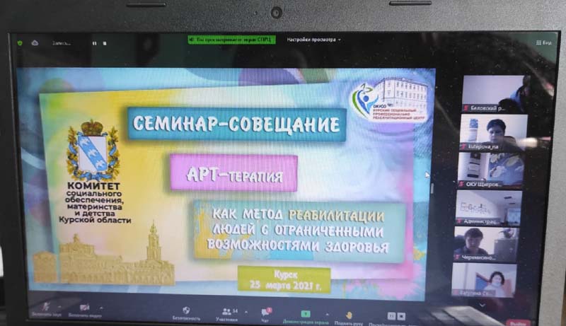 Сегодня на базе ОКУСО "Курский СПРЦ" прошел семинар-совещание по теме: «Арт - терапия как метод реабилитации людей с ограниченными возможностями здоровья» в режиме Онлайн. В семинаре приняли участие специалисты учреждений социального обслуживания семьи и детей, представители органов опеки и попечительства, образования Курской области.