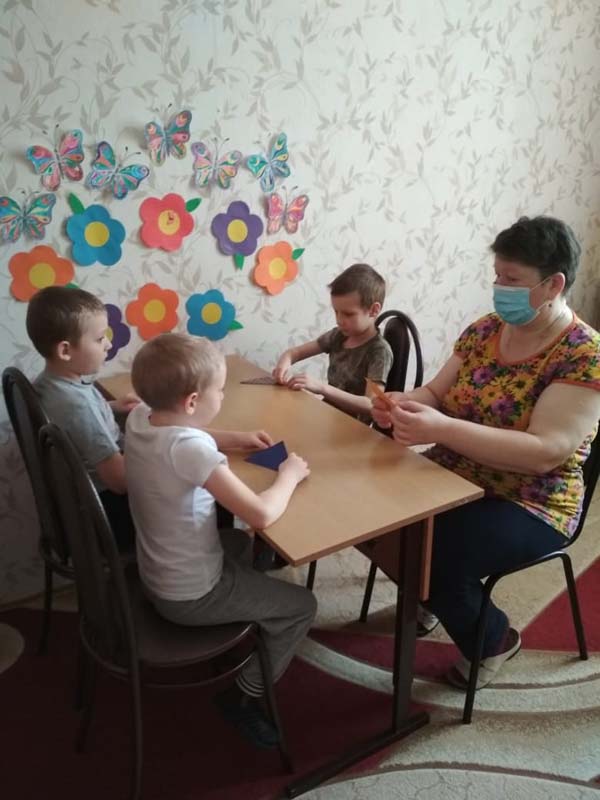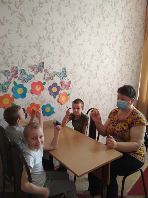 Занятие в творческой мастерской (руководитель Сергеева Л. Г.) было про бабочек. Дети узнали, что по разнообразию окраски бабочки вне конкуренции, отличаются они и размерами. Вспомнили знакомые названия бабочек. Воспитанники закрепили правила складывания поделок из бумаги. На занятии была использована пальчиковая гимнастика. Руководитель пошагово выполнила показ складывания насекомого, затем дети самостоятельно изготовили поделки. Для складывания бабочек была использована бумага квадратной формы. Дети посадили бабочек на цветущую поляну.