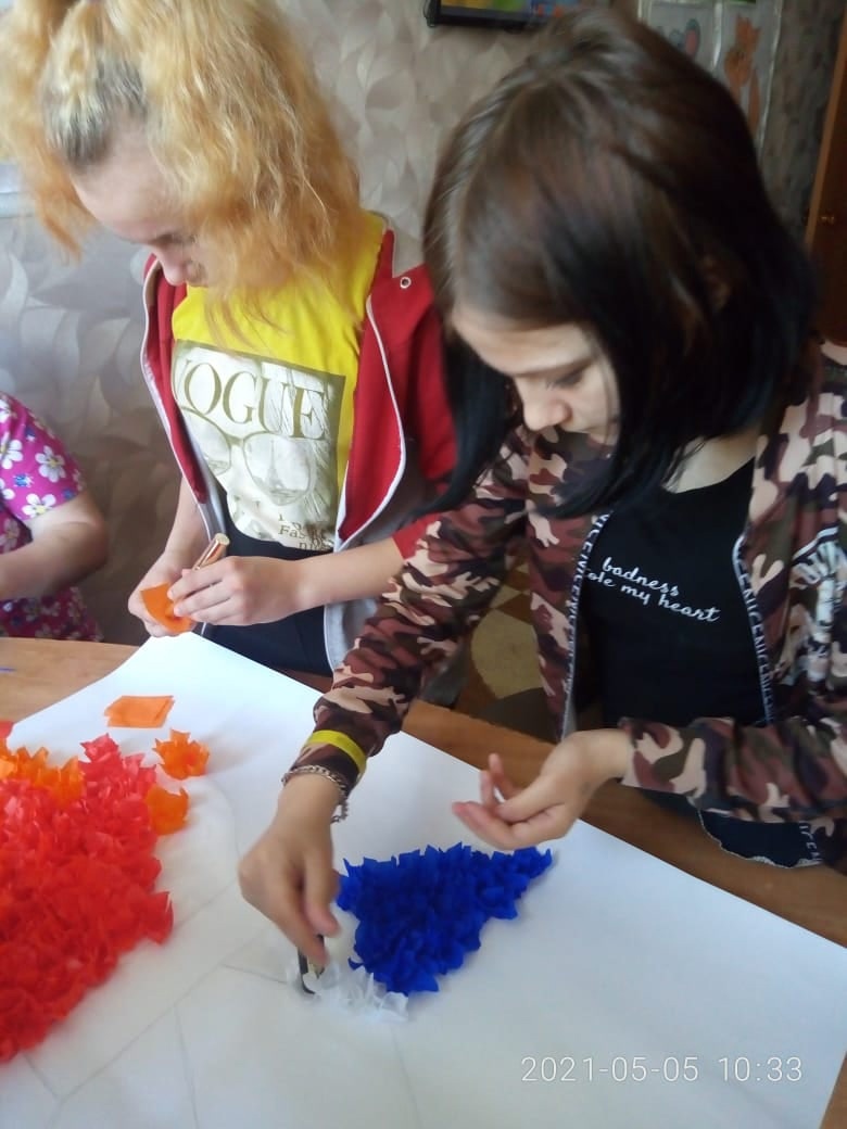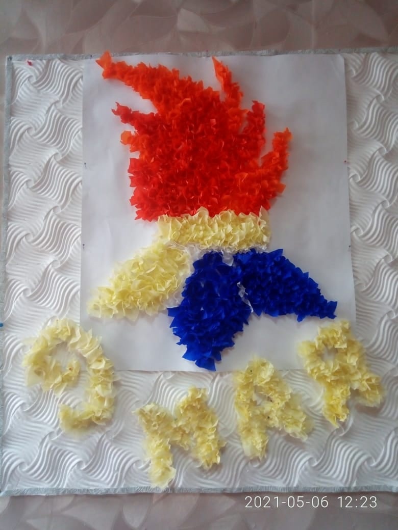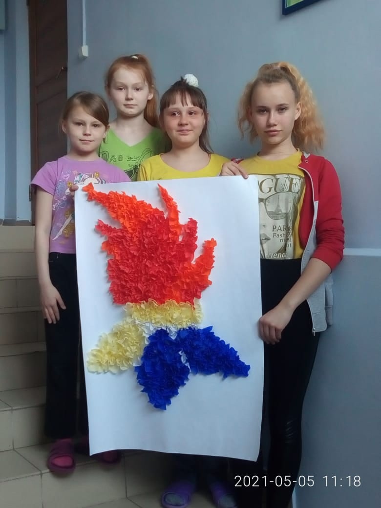 День Победы-грандиозный праздник, особенно для наших граждан. Задача старшего поколения состоит в том, чтобы дети понимали суть самого праздника, знали историю войны и не допускали фашизма в будущем. Накануне праздника Дня Победы воспитатели Анохина М.А. и Прыгаева С.И. читали детям рассказы о войне, смотрели документальные фильмы на военную тематику, а также выполнили коллективную объемную аппликацию "Вечный огонь".