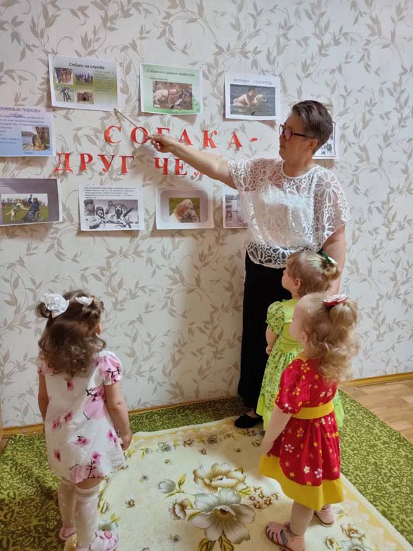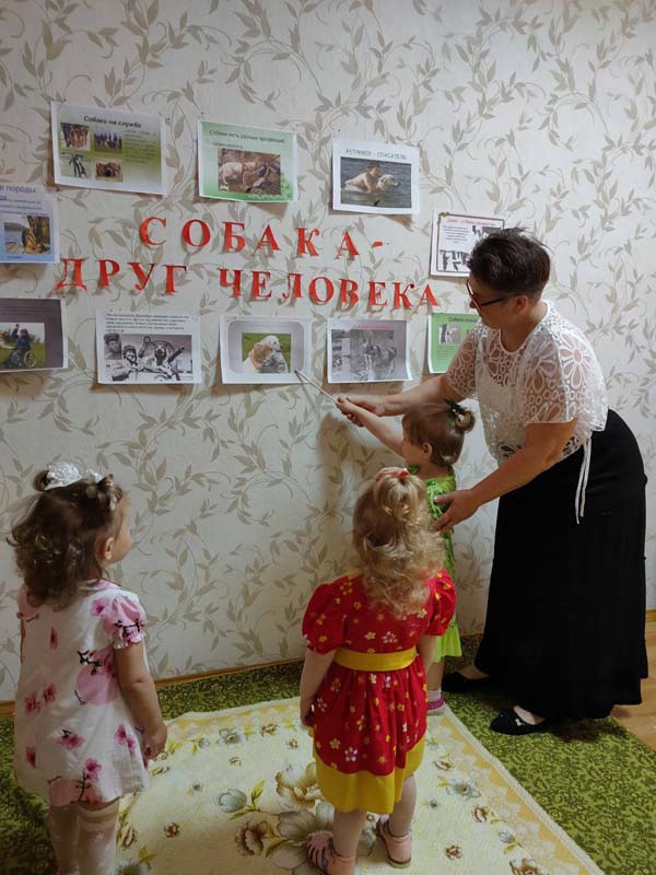 15 июня воспитатель Булавинова В. А. провела групповое занятие на тему " Собака - друг человека." Собаки служат в различных организациях : в полиции, в армии, в МЧС, на таможне.