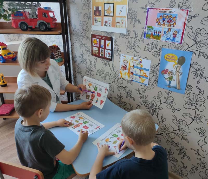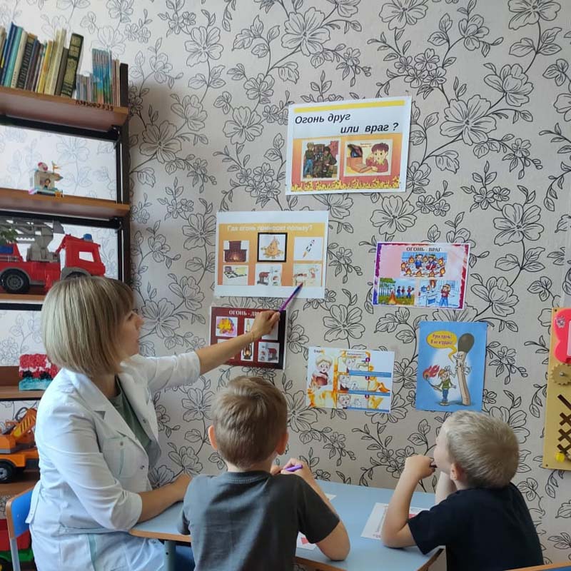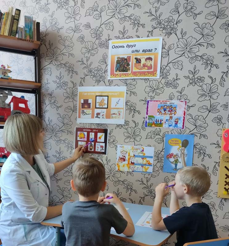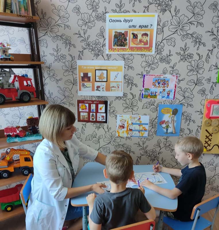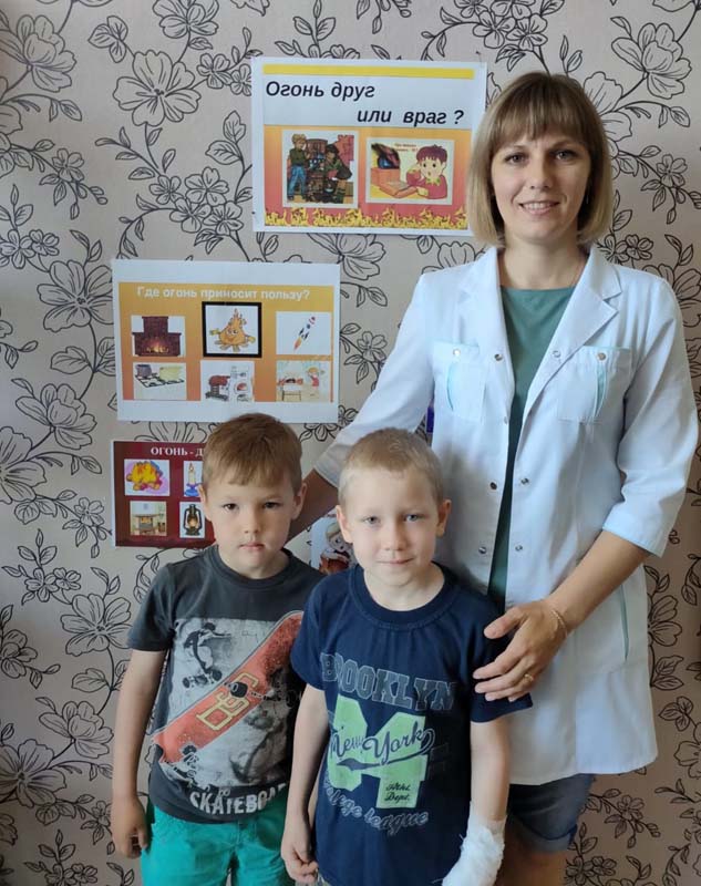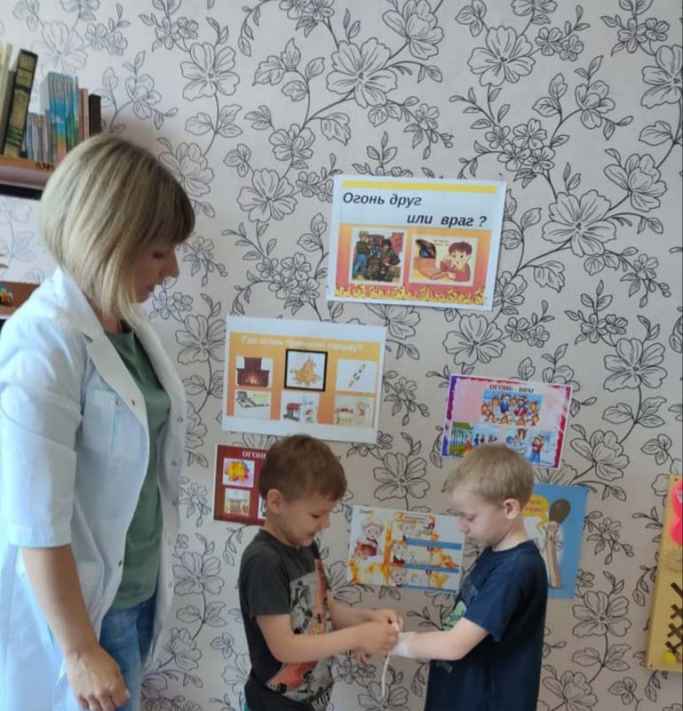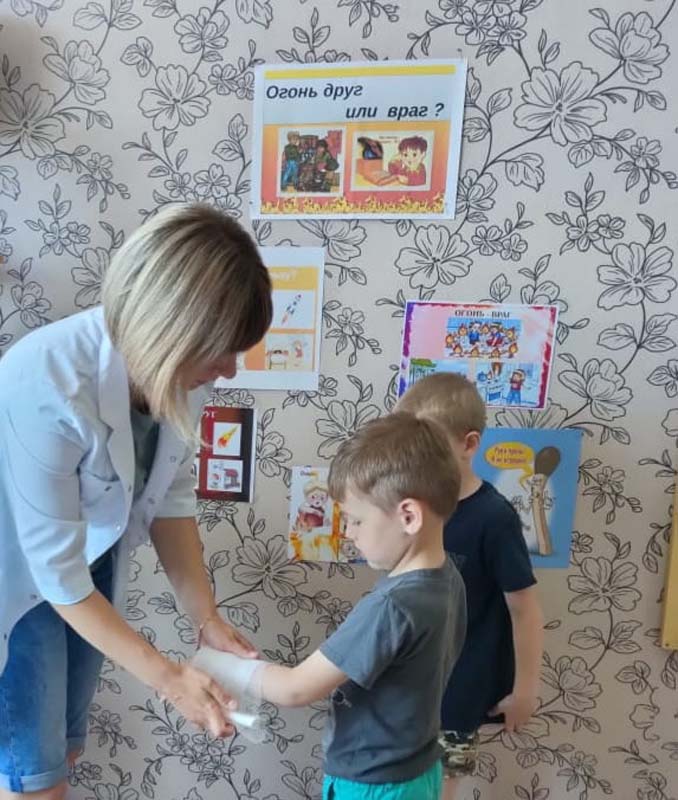 Дети часто травмируются и погибают во время пожаров, а иногда и сами становятся виновниками их возникновения. Это происходит от того, что взрослые нередко забывают о необходимости привить чувство ответственности за шалости с огнём. Для того, чтобы уберечь детей от возможной трагедии, необходима целенаправленная работа над формированием у них культуры пожаробезопасного поведения. Медицинской сестрой Колупаевой Н.С. была проведена беседа "Огонь: друг или враг?" В ходе беседы дети узнали много интересного, например, как на обожжёную часть тела наложить асептическую повязку, а также попробовали оказать помощь товарищу при ожоге.