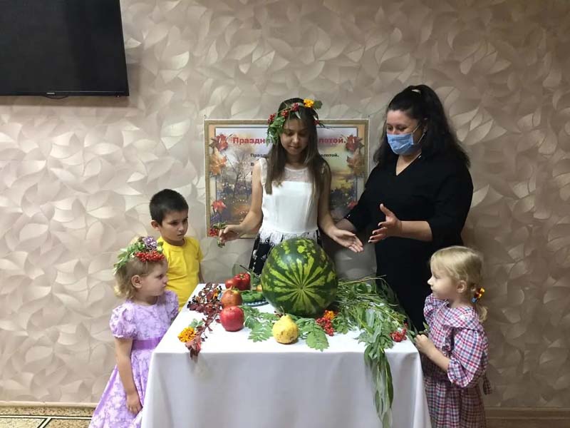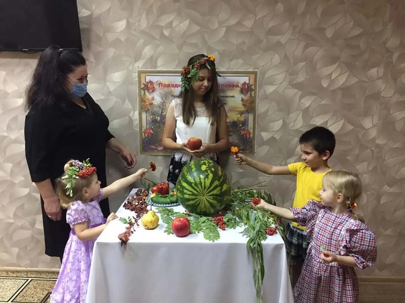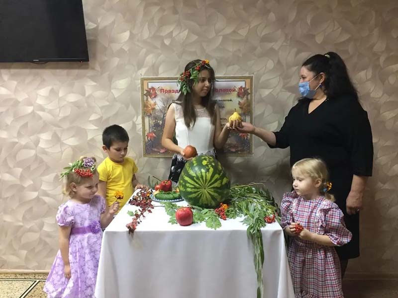 Сегодня к деткам нашего учреждения приходила королева - осень со своими дарами. Принесла овощи и фрукты и много других осенних подарков. Дарила веселое настроение, много развлечений и ярких красок. Порадовала детей осенними играми, в которых они с удовольствием участвовали. Но и осень не осталась без подарка. Дети выполнили рисунки «Эскизы осени» и подарили королеве. Праздник завершился арбузным пиром.