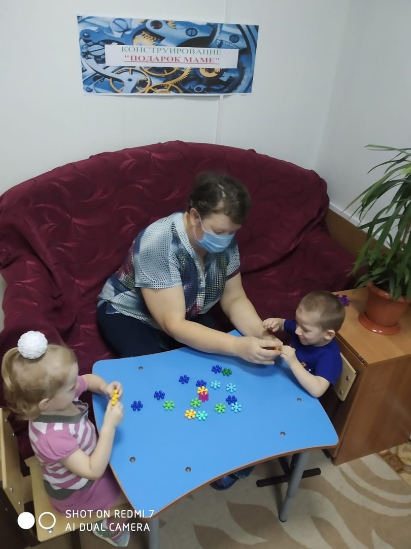 из объёмного конструктора "Мозаика". С детьми была проведена беседа о мамином празднике, выполнена пальчиковая гимнастика. Воспитанники собирали из конструктора цветочки для мам. Дети увлеченно, с интересом изготавливали подарки. В конце занятия был подведен итог.