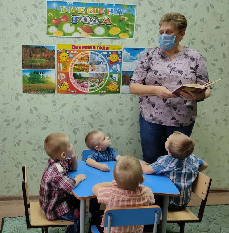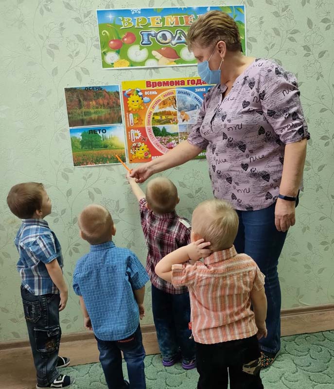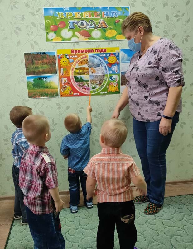 "Времена года", на котором с помощью иллюстраций познакомила детей с временами года, показала красоту различий времён года, сезонных изменений, закономерность наступления каждого времени года. Ирина Анатольевна прочитала стихи русских поэтов, посвящённые временам года.