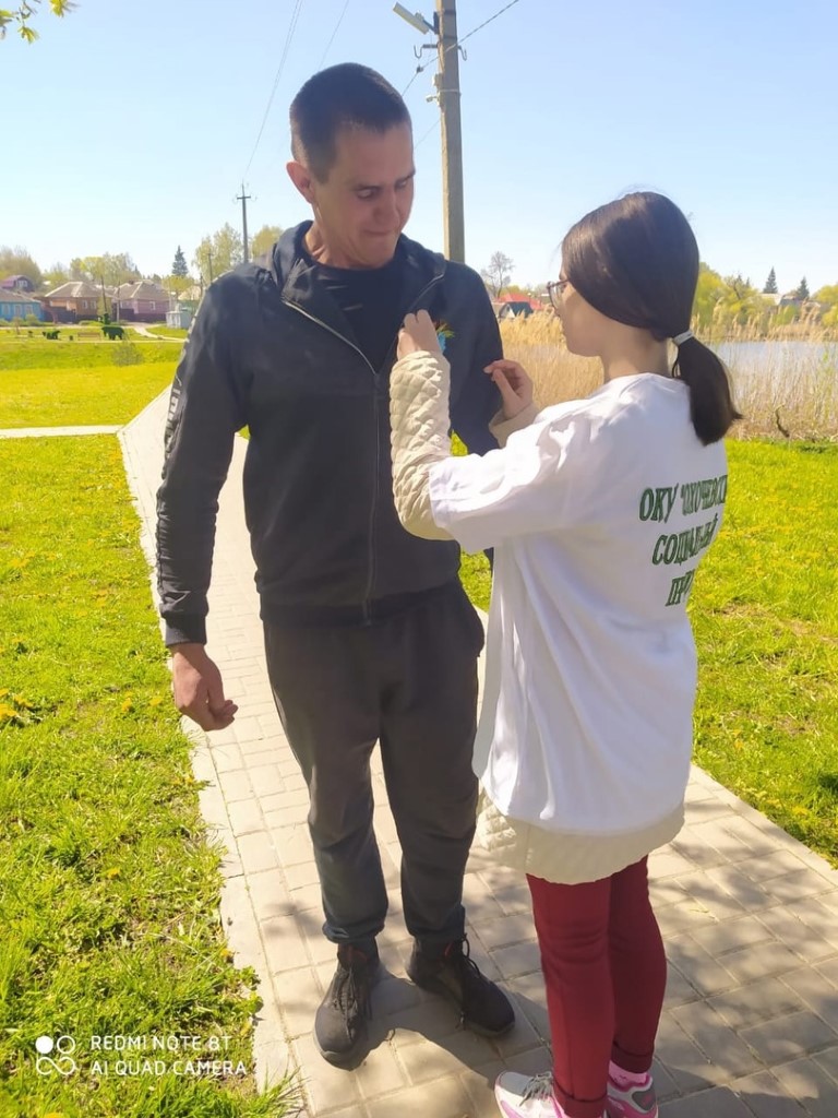 Сотрудники и воспитанники учреждения изготовили ленточки черно-оранжевого цвета в память о подвигах дедов и прадедов, сокрушивших нацистов в годы Великой Отечественной войны. А Екатерина Шевцова из г. Курска подарила каждому воспитаннику георгиевскую ленточку, сделанную своими руками. Выражаем Екатерине огромную благодарность от лица всего учреждения.