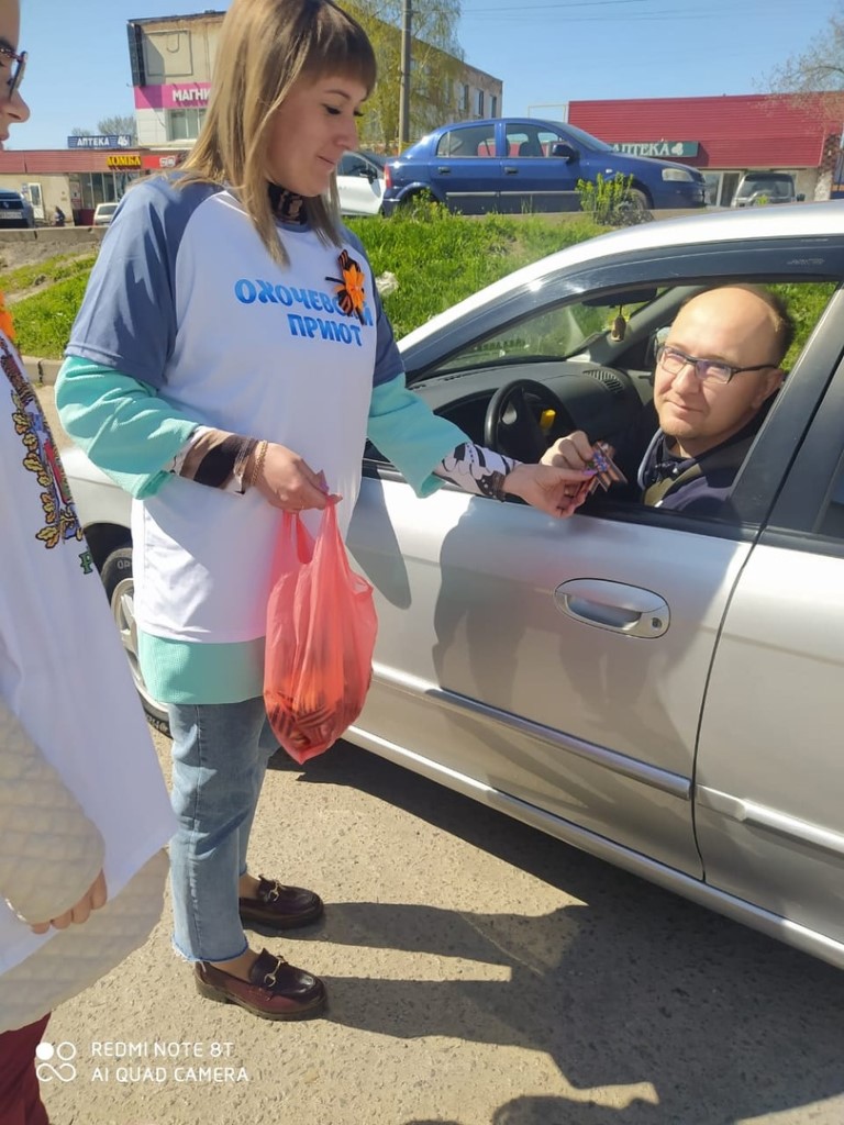 Ребята раздали ленты гостям и жителям г. Щигры, тем самым