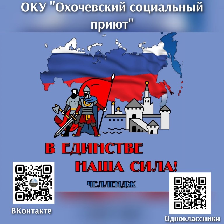 ОКУ "Охочевский социальный приют" запускает патриотический челлендж " В единстве наша сила".