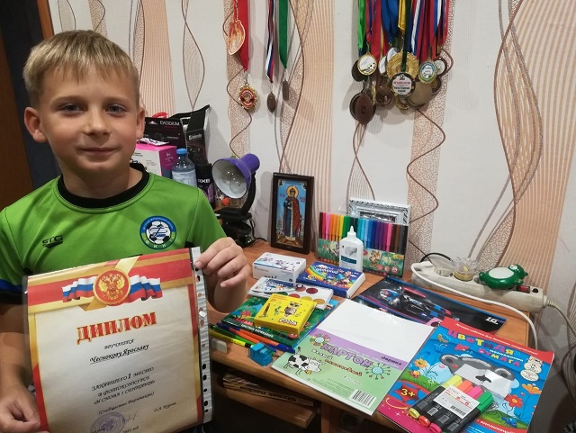 Ярослав награждён Дипломом и подарком (набор школьных принадлежностей).