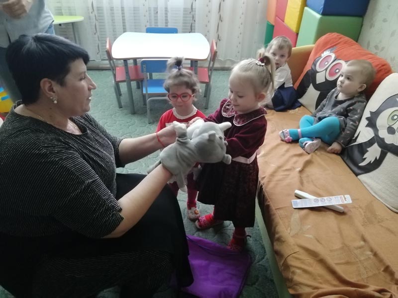 В кабинете раннего вмешательства педагог-психолог Денисова Наталья Николаевна провела занятие "В гостях у собачки Кляксы и её друзей".