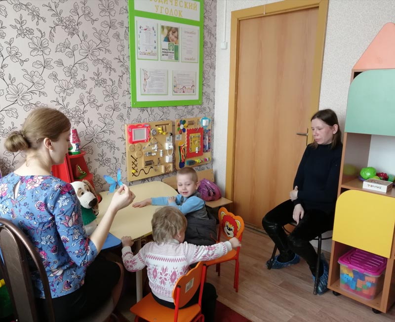 Для сотрудников ОКУ "Охочевский социальный приют" гости провели консультативное занятие по опыту работы с детьми в кабинете раннего вмешательства. Также специалисты Центра раннего вмешательства проконсультировали и дали рекомендации мамам детей.