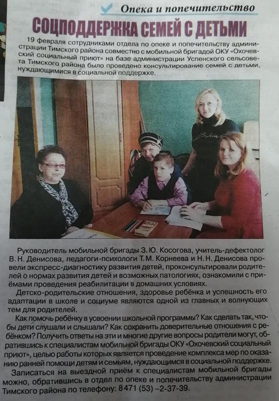 В газете "СЛОВО ХЛЕБОРОБА" Тимского района от 28 февраля 2020 года № 9 была опубликована небольшая, но емкая статья о первом выезде Мобильной бригады ОКУ "Охочевский социальный приют".