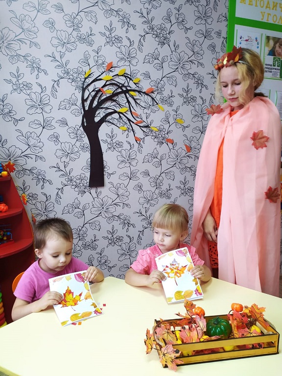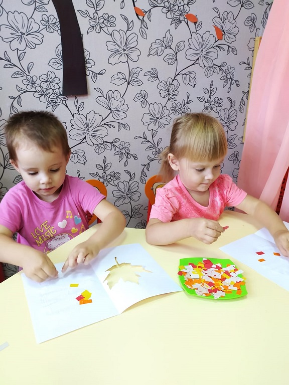 В завершении дети выполнили аппликацию "Осенние краски". По итогу занятия все получили много замечательных впечатлений и прекрасного настроения.