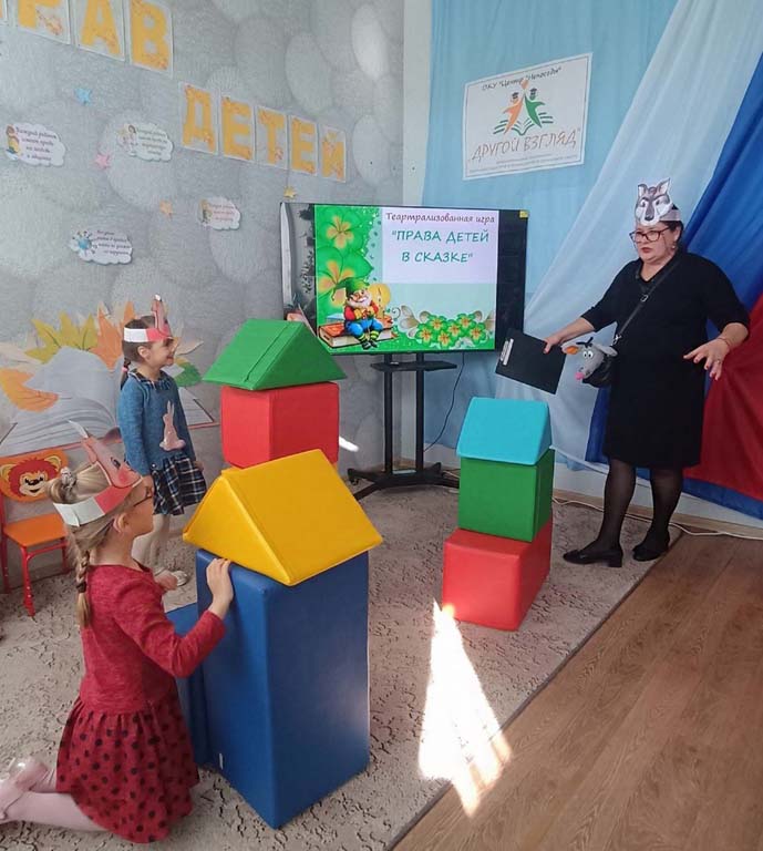 Социальный педагог Зиновьева Е.В. в роли старухи Шапокляк подготовила и провела театрализованную игру "Права детей в сказках". Воспитанники с удовольствием угадывали сказочных персонажей, а гости мероприятия называли, какие права ребёнка нарушены в этих сказках. Игры "Построй и защити свой домик", "Собери золотые яйца" очень понравились детям, которые перевоплотились в сказочных персонажей и попали в настоящую сказку. Во время физкультминутки "Тучка" к воспитанникам присоединились сотрудники Центра, а атмосфера дружбы и искренней радости позволила и детям, и взрослым повеселиться от души!