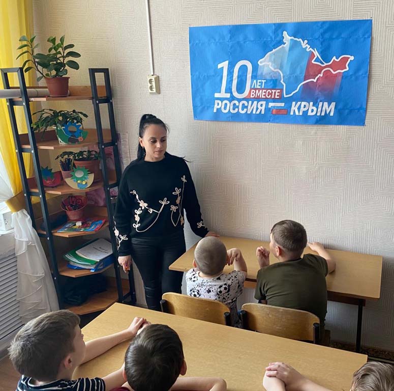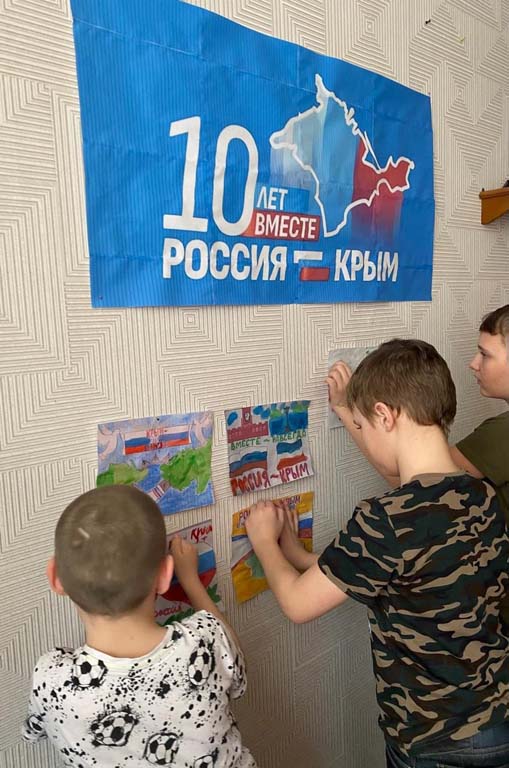 Очередное занятие из цикла «Разговор о важном» в Центре было посвящено Дню воссоединения Крыма с Россией. Социальный педагог Хомякова Ю.С. рассказала ребятам о событиях, которые произошли 10 лет назад, на основании чего население Крыма и г. Севастополя приняло решение «вернуться в родную гавань». Разговор содержал информацию о важности исторического момента, который разворачивался прямо на глазах современных россиян, о военной славе города Севастополя, а также об истории Крымского полуострова.