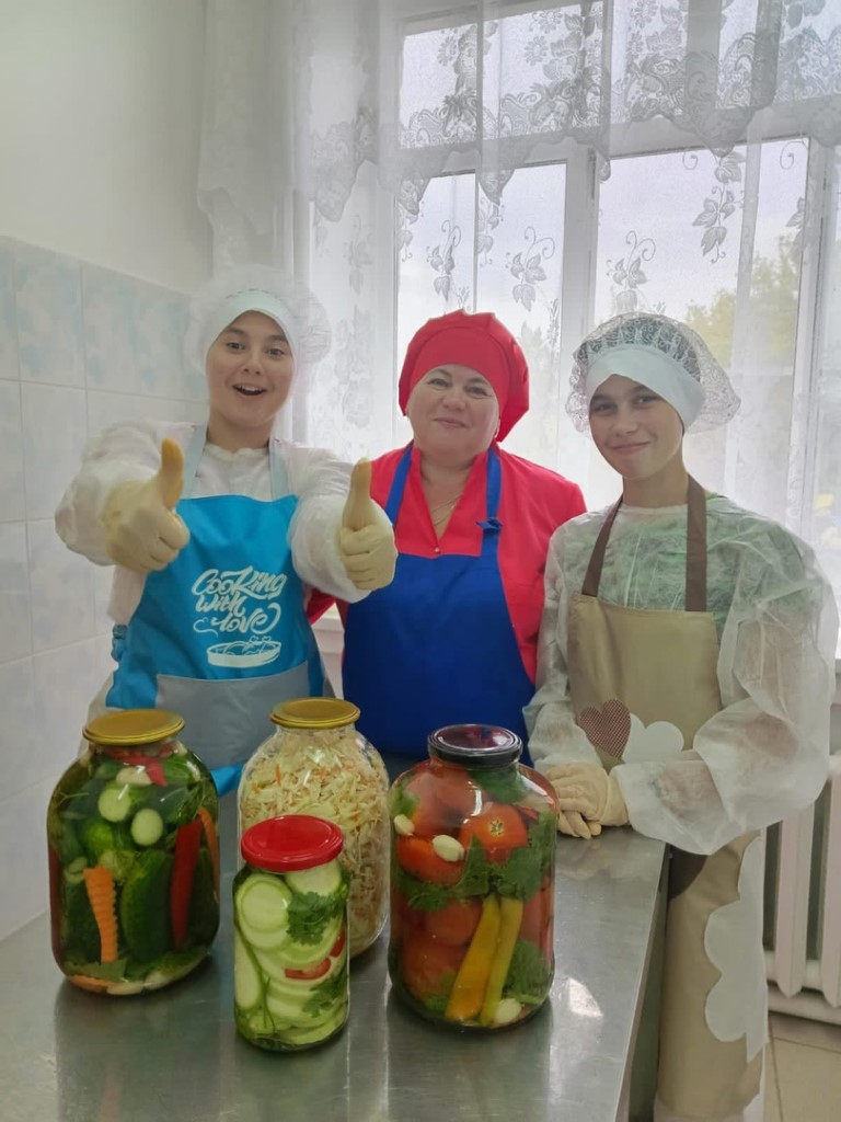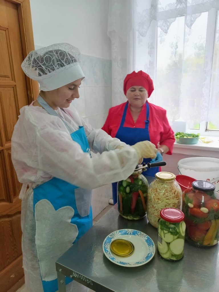 Алина и Ирина ответственно отнеслись к своим обязанностям и с удовольствием участвовали в процессе консервирования.