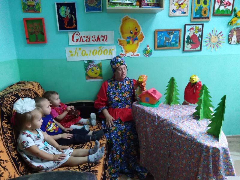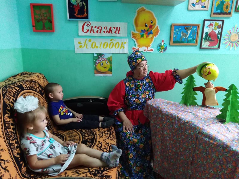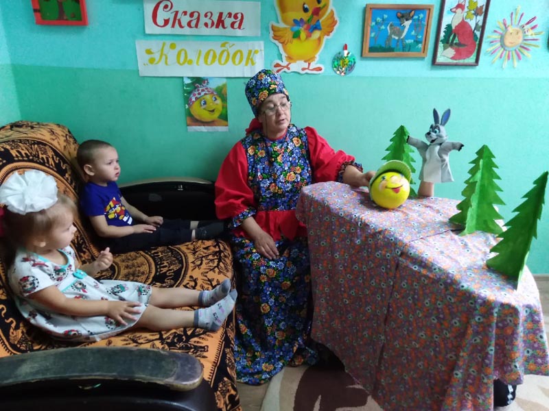 Воспитатель ОКУ "Охочевский социальный приют" Булавинова Валентина Анатольевна провела для воспитанников занятие по сказке "Колобок".