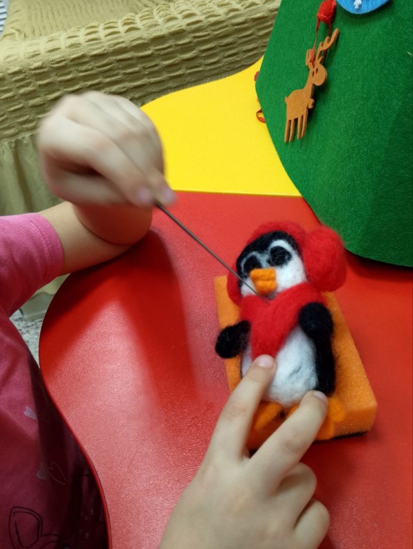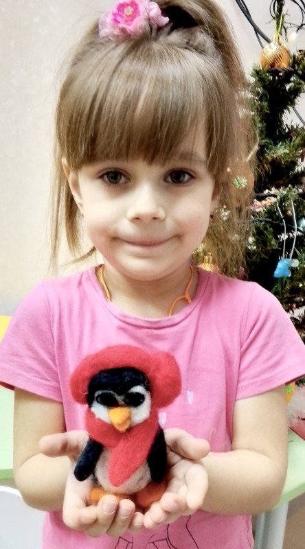 В рамках Комплекса мер «Развитие региональной системы обеспечения безопасности детей на 2024-2025 годы» в творческой мастерской «Творцы-молодцы» воспитатель Коренева И.А. с воспитанницей изготовили из шерсти поделку «Пингвин».