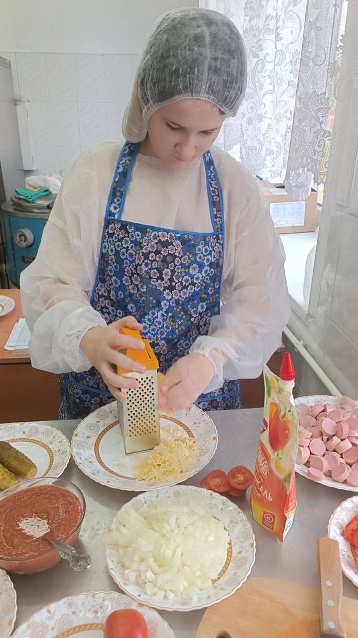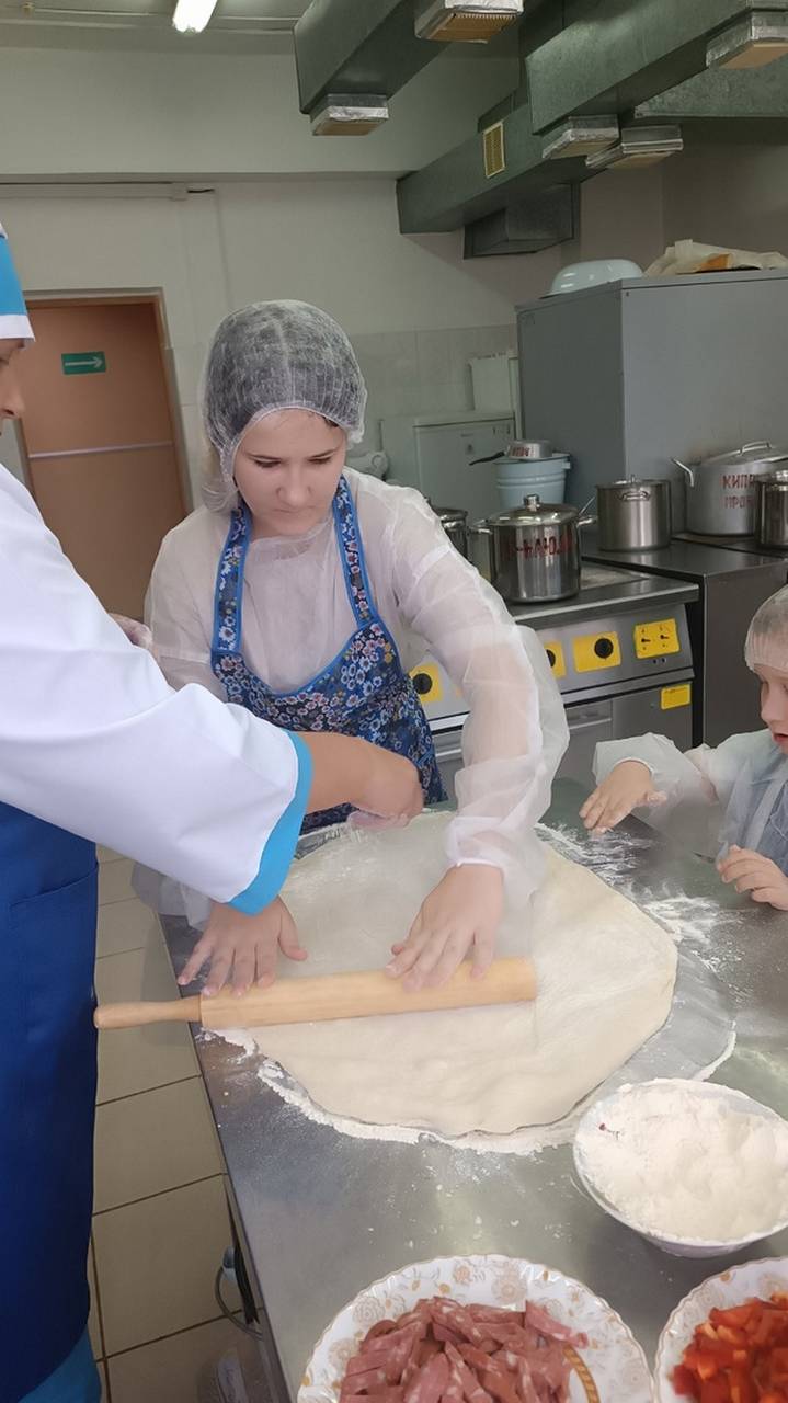 Повар Яковлева Е.Н. провела для воспитанниц занятие, на котором они учились готовить пиццу. Перед занятием провела инструктаж по технике безопасности.