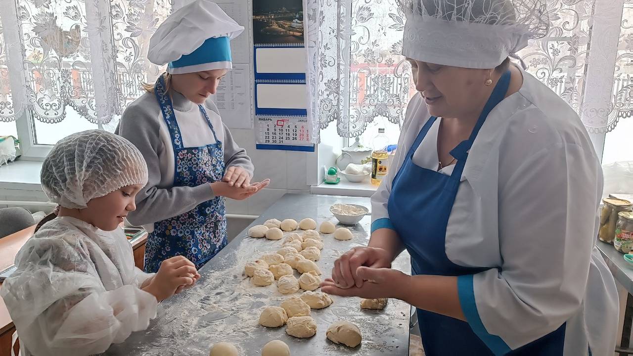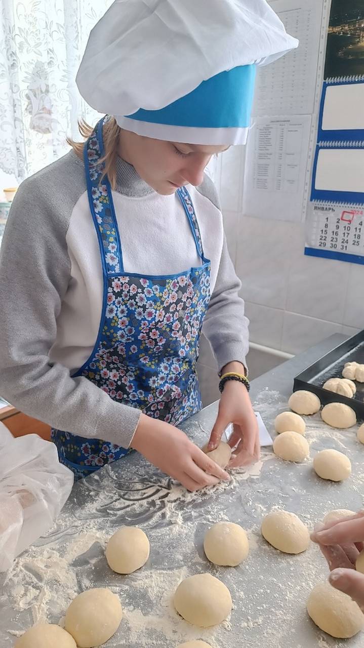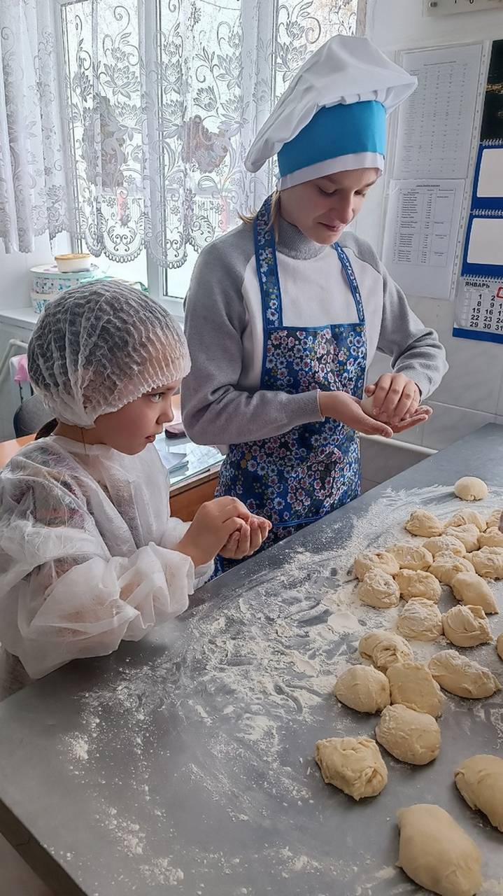 Повар Яковлева Е.Н. провела для воспитанниц занятие, на котором они учились готовить булочки.