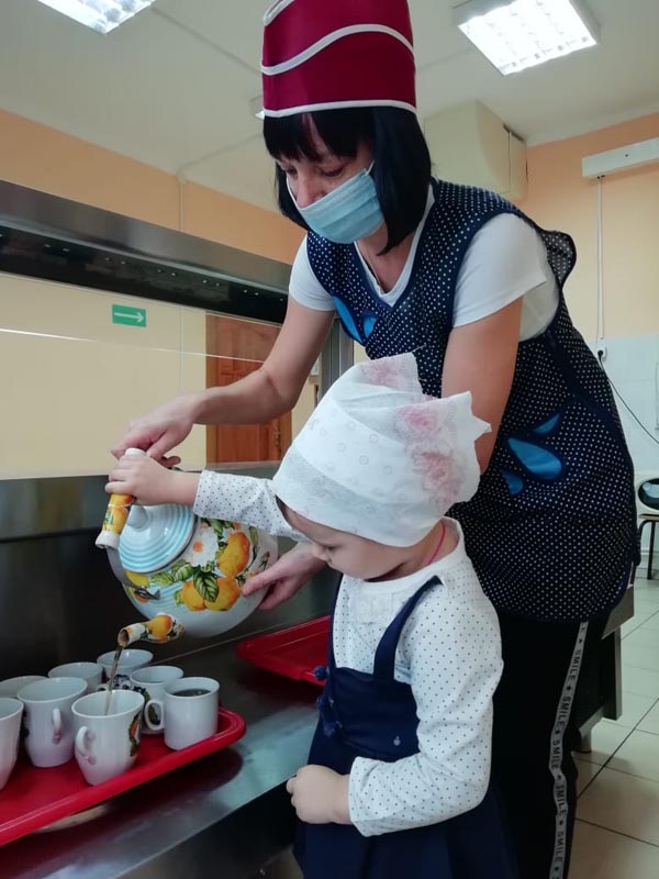 Вот и сегодня в нашем приюте малыши познакомились с работой повара и кухонного работника.