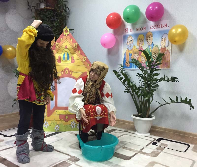Семейному быту и традициям посвящено занятие социального педагога Е. В. Зиновьевой «Я и моя семья». Дети узнали много нового о семейном укладе жизни, о воспитании детей, о досуге семьи, сами участвовали в семейном чаепитии, учились готовить, накрывать стол, играли. А завершили занятие инсценировкой сказки «О рыбаке и рыбке».
