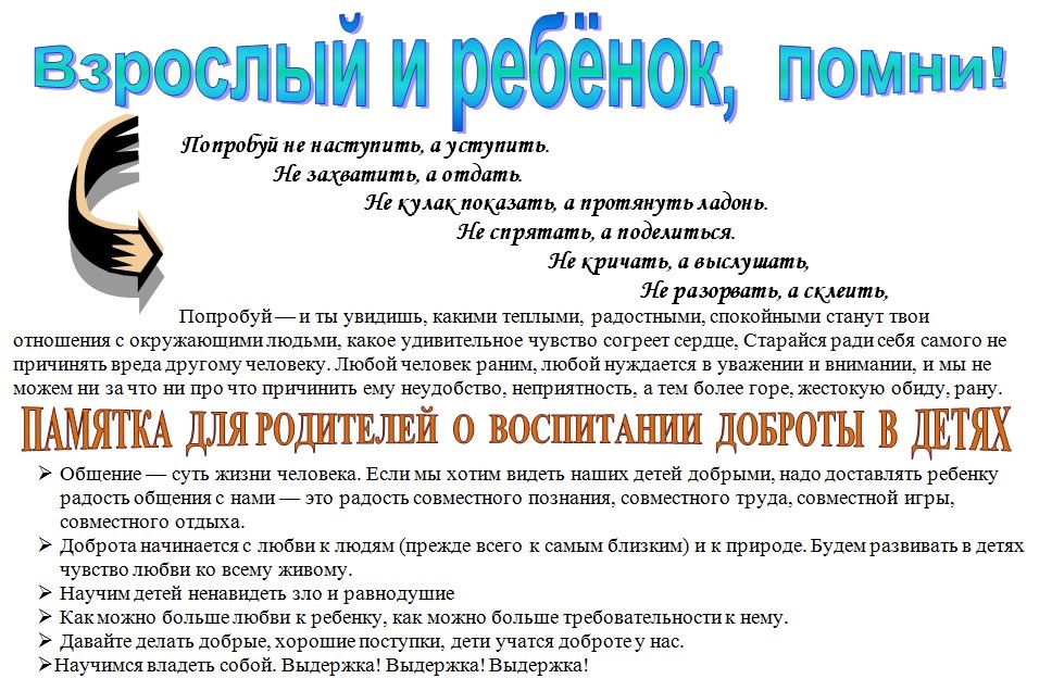 ПАМЯТКА «Типы агрессии у детей и способы построения отношений с ними»