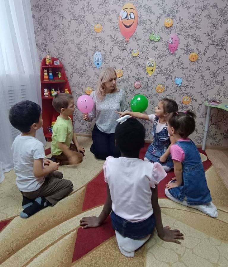 Гармоничное развитие эмоциональной сферы ребенка является залогом его здорового психического развития в целом. Богатое эмоциональное переживание окрашивает жизнь ребенка в яркие цвета. Работа по эмоциональному развитию детей позволяет обогатить эмоциональный опыт ребенка, смягчить и даже полностью устранить многие проблемы. На занятии с педагогом-психологом «Красочный мир эмоций» воспитанницы учились соотносить эмоции с цветом, выражать их художественными средствами, определять свое эмоциональное состояние и распознавать эмоции другого человека. Игры, упражнения и творческая деятельность способствовали повышению активности детей, вызвали у них положительное отношение к совместной работе, углубили представление о значении и возможностях эмоций.