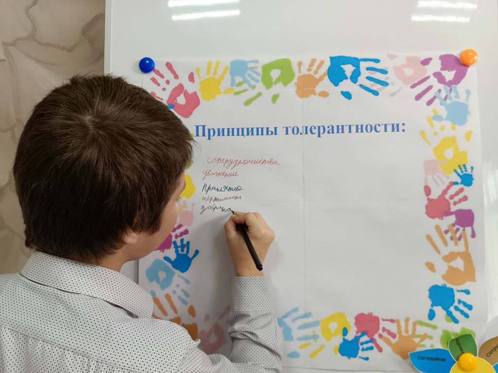 На занятии педагога-психолога «Территория толерантности» подростки познакомились с критериями и социальными проявлениями толерантности, научились уважать, принимать различия и быть терпимыми. Ребята открыто делились своими мыслями и чувствами. Каждый воспитанник смог почерпнуть что-то полезное для себя и определить, над чем ему нужно работать. Развитие толерантности у детей в будущем положительно скажется на их росте, укрепит их веру в себя и свои возможности.