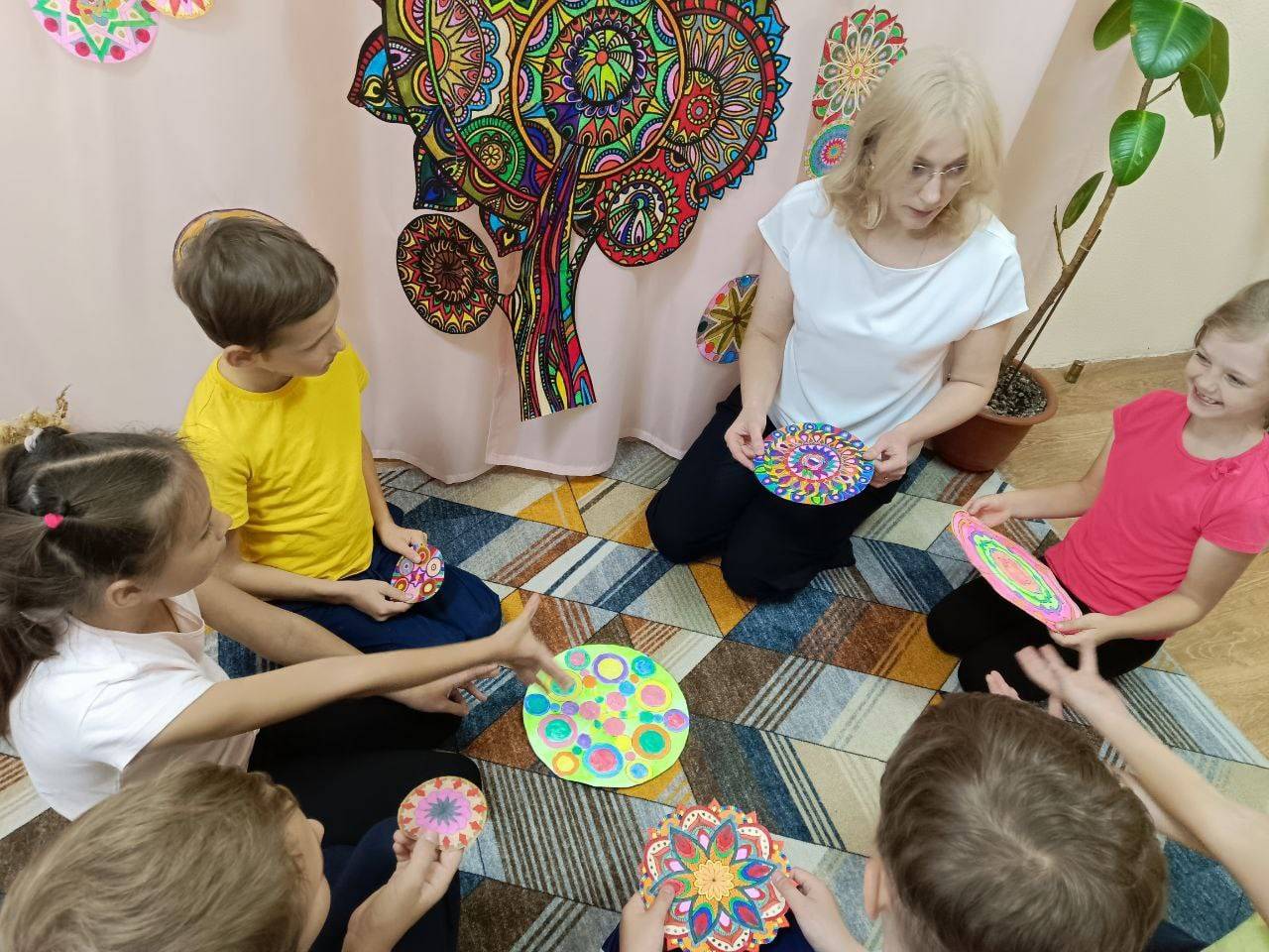 Рисуя или раскрашивая мандалу, ребенок изображает гармоничную структуру, вследствие чего его мысли упорядочиваются, настроение повышается, что непременно приводит к гармонизации внутреннего эмоционального состояния. В рамках реализации Комплекса мер "Безопасное детство" педагог-психолог Денисова Н. Н. провела занятие-тренинг с элементами арт-терапии "Магический круг - Мандала", на котором воспитанники познакомились с искусством мандалы. Увлекательная работа способствовала не только приобретению уверенности в себе, развитию творческих способностей, но и обретению спокойствия и согласия с миром и с самим собой.