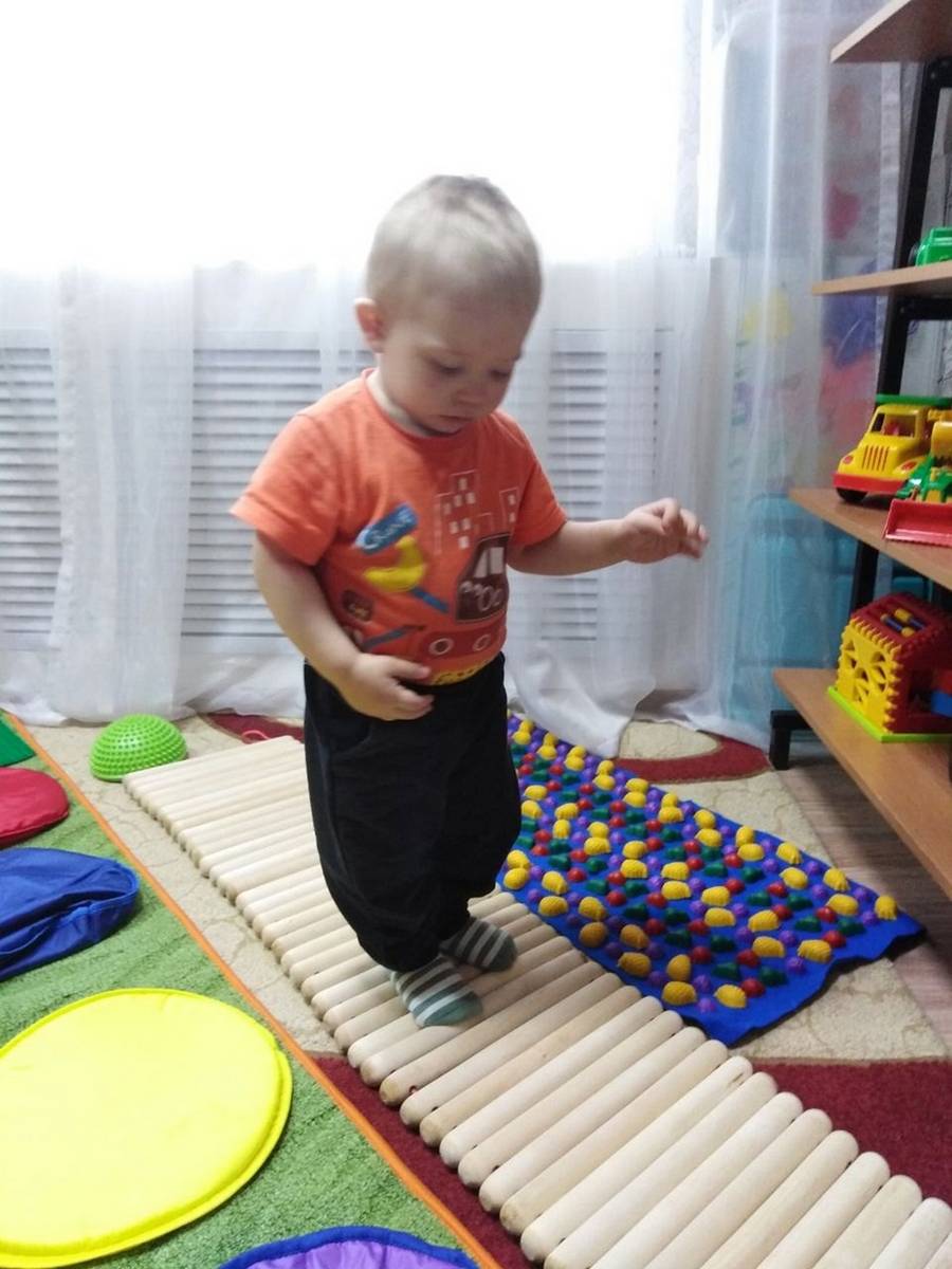 Воспитанники младшей группы ОКУ "Центр" Непоседы" сегодня в игровой форме познакомились с тактильной дорожкой, которая предназначена для развития ощущений. Через тактильные ощущения стимулируются нервные окончания на коже, тренируются пальчики на руках и ногах, что благоприятно сказывается на мозговом центре, отвечающем за речь.
