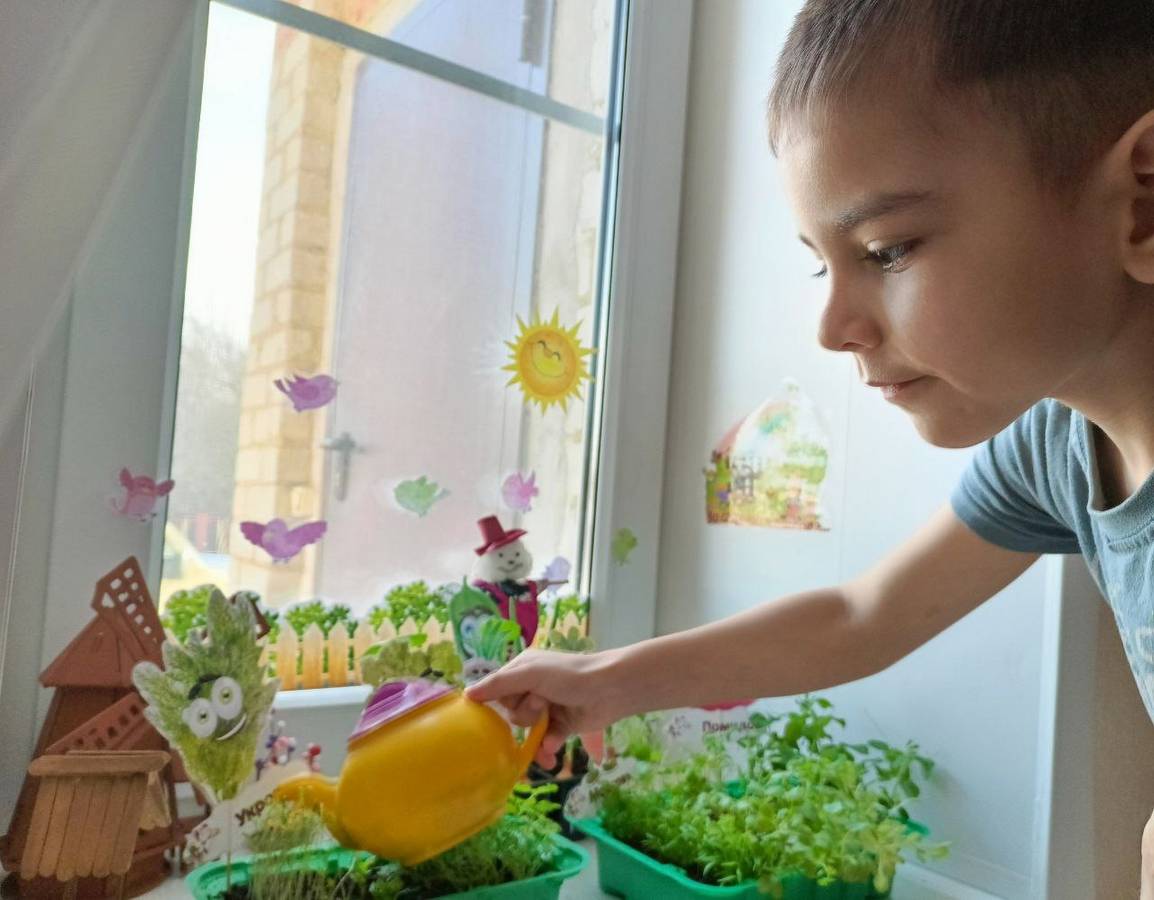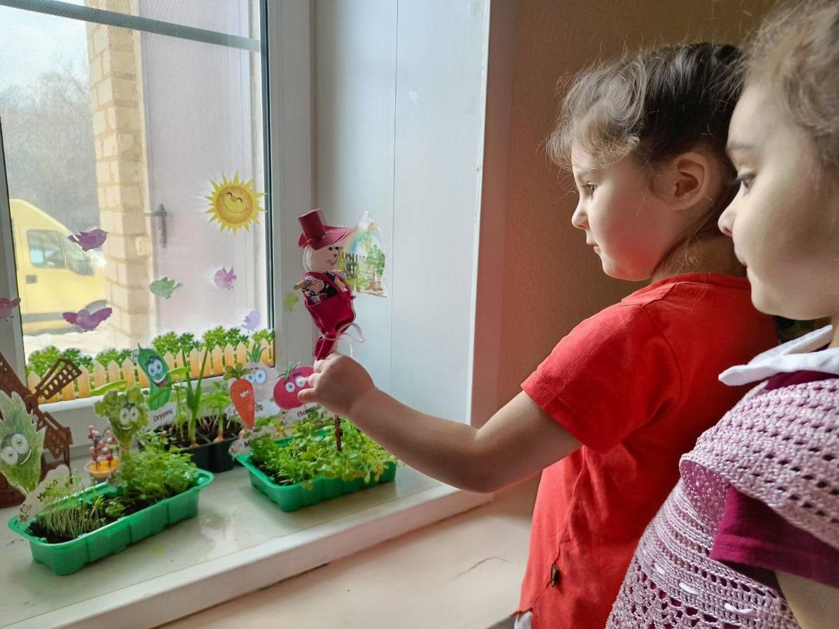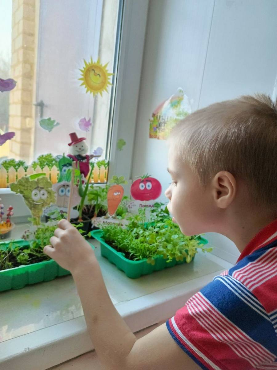 Мир вокруг себя дети познают практически. Для создания условий, стимулирующих интерес к исследовательской деятельности, вовлечения детей в практическую деятельность по выращиванию культурных огородных растений была организована совместная трудовая деятельность с детьми по посадке огорода на подоконнике. Ребята принимали непосредственное участие в посадке и с удовольствием ухаживали за растениями. Познакомились с семенами растений, с интересом наблюдали за первыми зелеными ростками. С радостью играли в пальчиковые игры. Совместная работа расширила представления детей о растениях. Воспитанники радовались красоте выращиваемых растений и результатом своего труда.