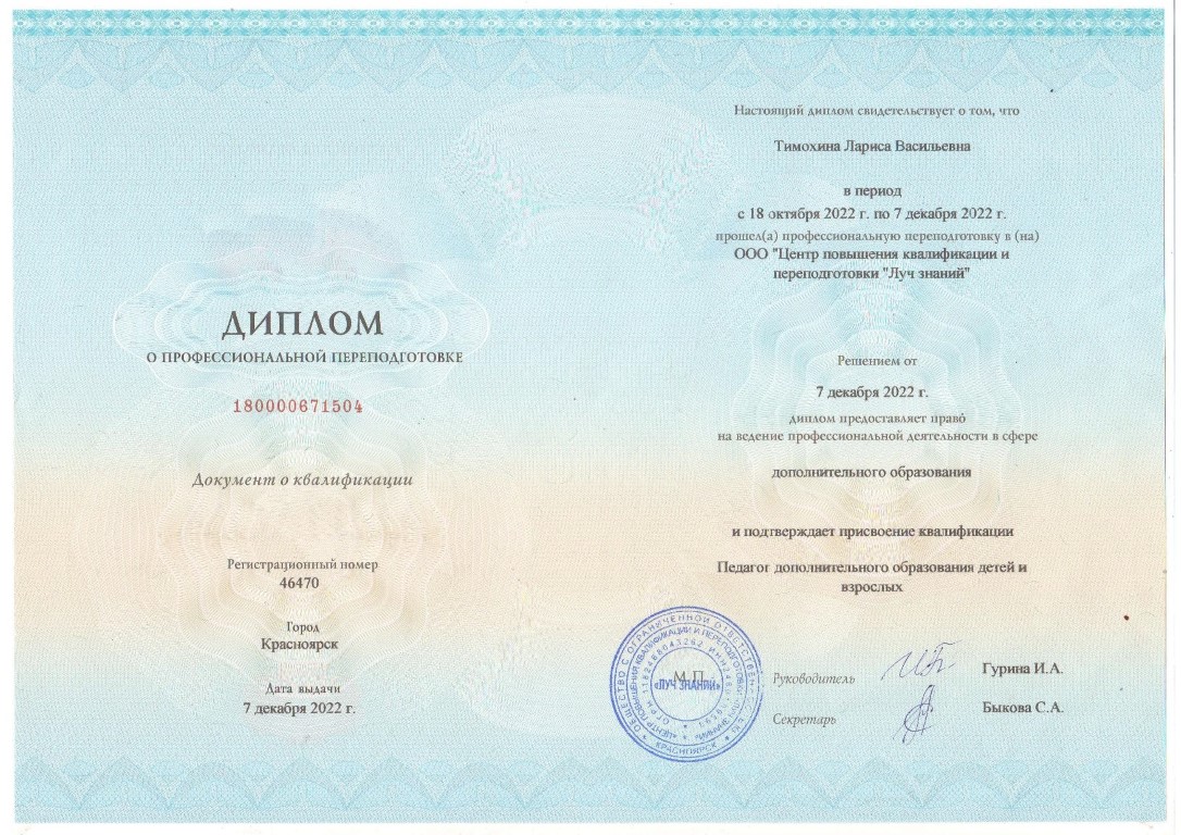 Педагог-психолог Тимохина Лариса Васильевна