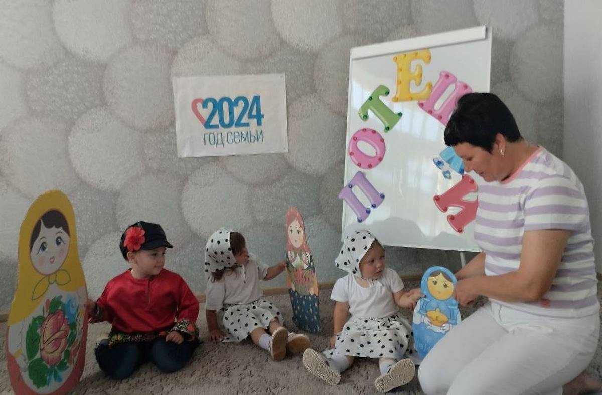 В рамках мероприятий, посвященных Году семьи, в ОКУ "Охочевский центр "Непоседы" прошло занятие "Потешки" для самых маленьких воспитанников . Фольклорный жанр "потешки" играет важную роль в процессе развития детей. Простые, короткие и веселые стишки побуждают детей к действию: "Очень любим мы, матрешки, разноцветные одежки".