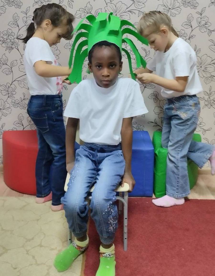 Выполняя упражнение «Парикмахер», воспитанники создали своими руками красивую и стильную причёску. Для этого понадобились фантазия, бумага и ножницы.
