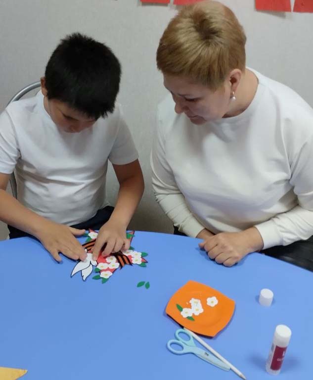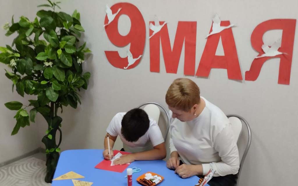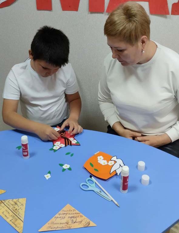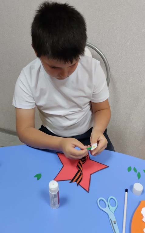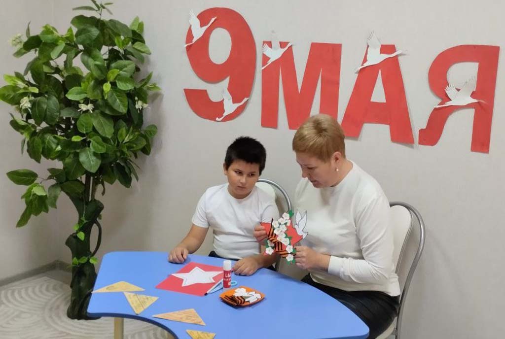 В день празднования 80-летия Победы в Великой Отечественной войне педагог-психолог Тимохина Л.В. провела с воспитанником ОКУ "Охочевский центр «Непоседы» патриотический мастер-класс "Звезда Победы". В память о героическом прошлом многонационального Советского Союза была изготовлена звезда из красной цветной бумаги, к которой прикрепили символ мира - голубя - и цветы. Выполняя поделку, ребёнок постарался вложить в неё частичку души и преклонение перед теми, кто отдал свои жизни за мирное небо, кто выстоял в тяжелейшей борьбе и победил.