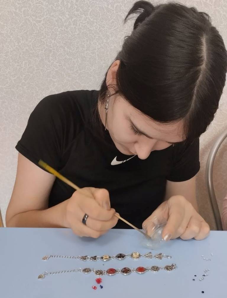 Сегодня в ОКУ «Охочевский центр «Непоседы» воспитанницы вместе с педагогом-психологом Тимохиной Л.В. познакомились с новым для себя видом деятельности - создание изделий из эпоксидной смолы. Из данного материала можно создавать браслеты, серьги, броши, украшения с декоративными элементами (сухоцветы, блёстки). Техника и творчество в создании украшений из эпоксидной смолы даёт свободу для творческой самореализации. Проявите фантазию - и искусство создания украшений станет вашим собственным увлекательным хобби!
