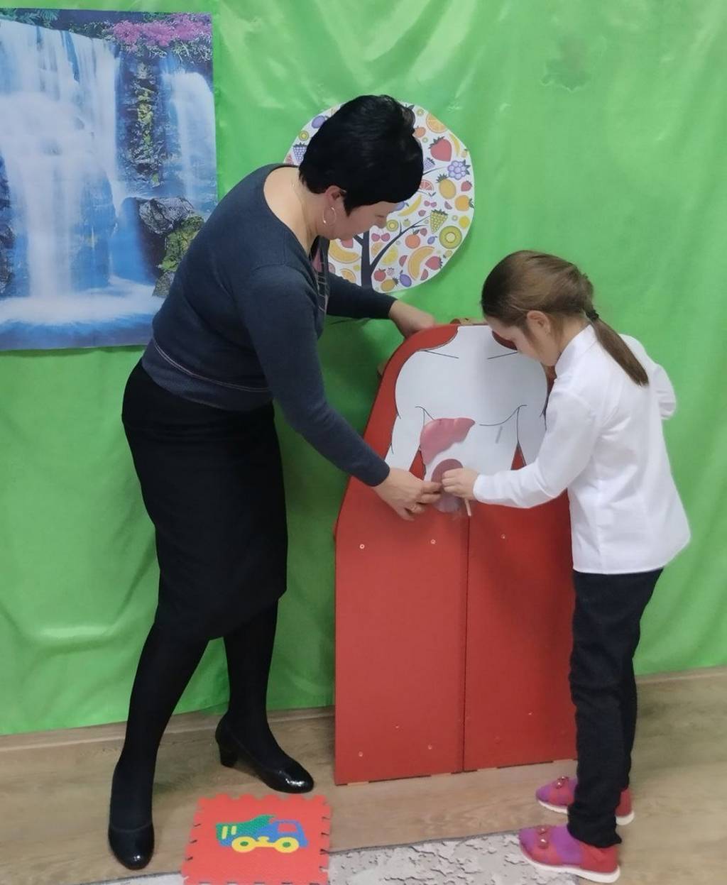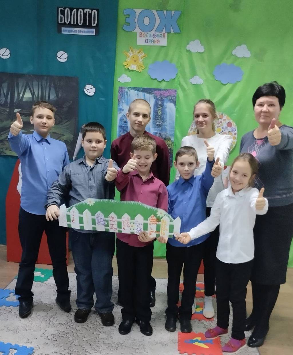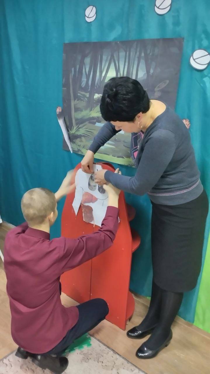 Ребята побывали в «Болоте вредных привычек» и «Волшебной стране ЗОЖ». Чтобы выбраться из болота, им пришлось искать альтернативу вредным привычкам. А в стране ЗОЖ насладиться вкусами и запахами фруктов, витаминных напитков. На макете человека сравнивали состояние внутренних органов больного и здорового человека.
