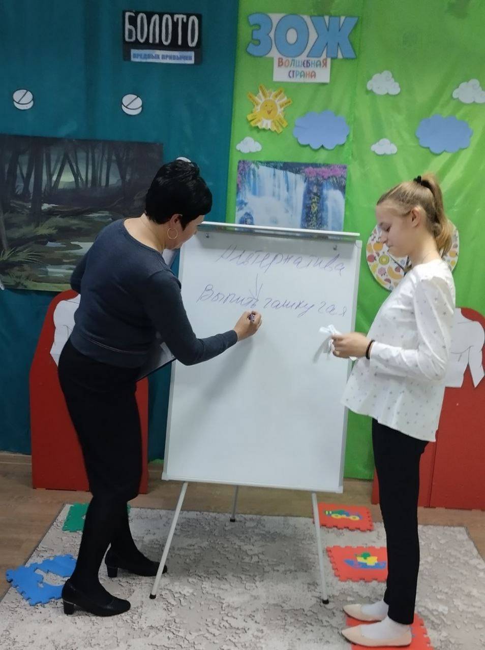 В конце занятия воспитанники сделали вывод, что ассоциация жизни со всеми ее запахами, вкусами и разнообразием красок нравится им гораздо больше, чем ассоциации ее с болотом вредных привычек.
