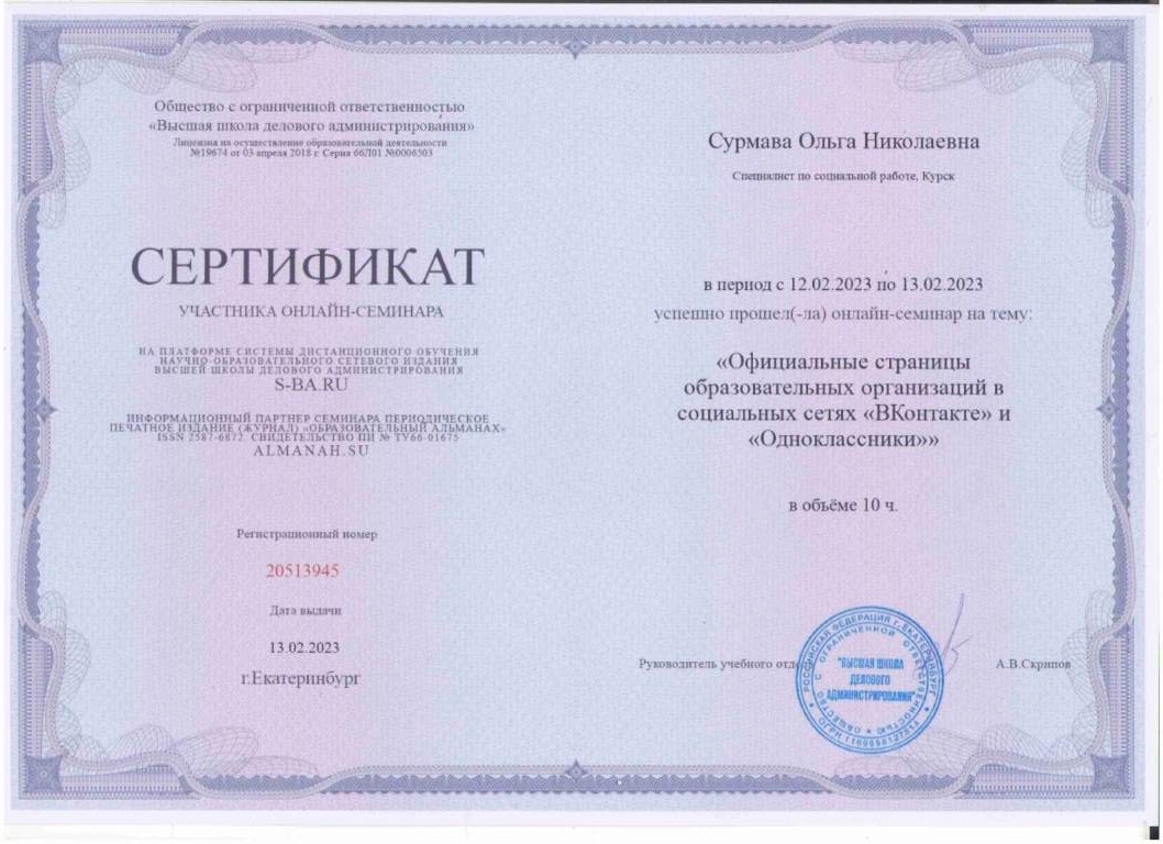View the embedded image gallery online at: https://www.ohochevskiy-priyut.ru/index.php/videoportfolio-spetsialistov/122-spetsialisty-po-sotsialnoj-rabote/143-spetsialist-po-sotsialnoj-rabote-surmava-olga-nikolaevna/146-kursy-povysheniya-kvalifikatsii/411-2023-god#sigProId806bfc33b5 > >