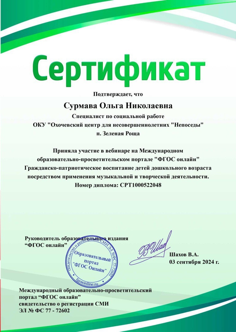 View the embedded image gallery online at: https://www.ohochevskiy-priyut.ru/index.php/videoportfolio-spetsialistov/122-spetsialisty-po-sotsialnoj-rabote/143-spetsialist-po-sotsialnoj-rabote-surmava-olga-nikolaevna/146-kursy-povysheniya-kvalifikatsii/412-2024-god#sigProIdd6e34a8cf1 > >