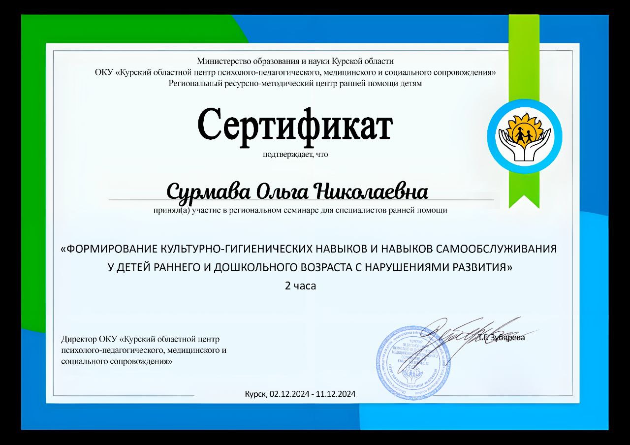 Главная Видеопортфолио специалистов Специалисты по социальной работе Специалист по социальной работе Сурмава Ольга Николаевна Курсы повышения квалификации 2024 год