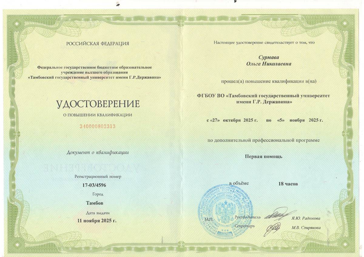 Главная Видеопортфолио специалистов Специалисты по социальной работе Специалист по социальной работе Сурмава Ольга Николаевна Курсы повышения квалификации 2025 год