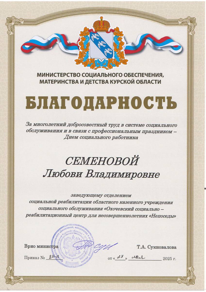View the embedded image gallery online at: https://ohochevskiy-priyut.ru/index.php/videoportfolio-spetsialistov/451-zaveduyushchie-otdeleniyami/445-zaveduyushchaya-otdeleniem-sotsialnoj-reabilitatsii-semenova-lyubov-vladimirovna/449-zaslugi-i-nagrady#sigProId9cf7a15754 > >