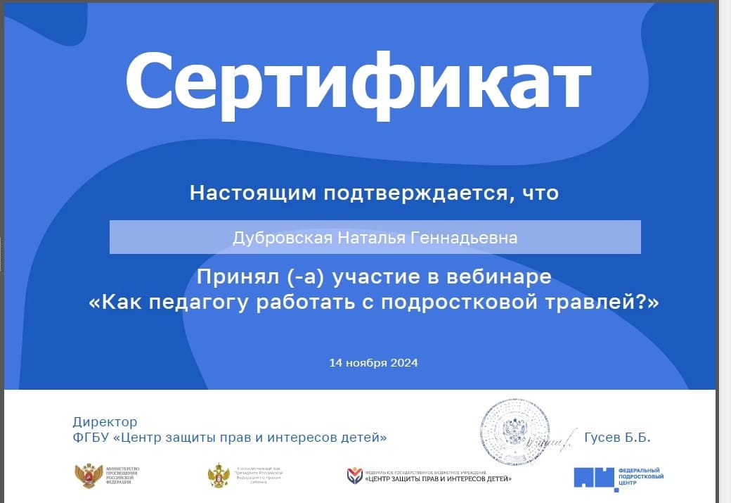 https://www.ohochevskiy-priyut.ru/index.php/videoportfolio-spetsialistov/vospitateli/otdelenie-sotsialnoj-reabilitatsii/256-vospitatel-otdeleniya-sotsialnoj-reabilitatsii-dubrovskaya-natalya-gennadevna/259-kursy-povysheniya-kvalifikatsii/414-2024-god#sigProId8558cffe80