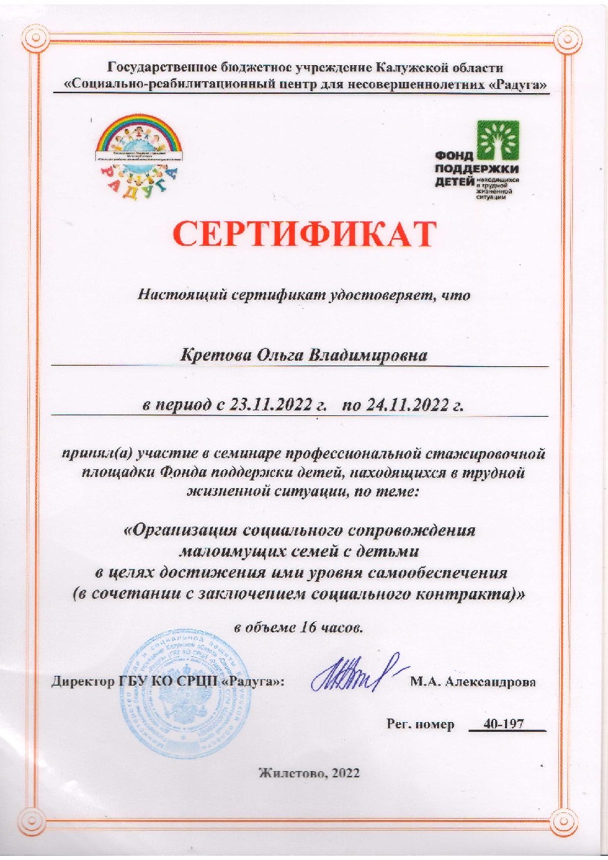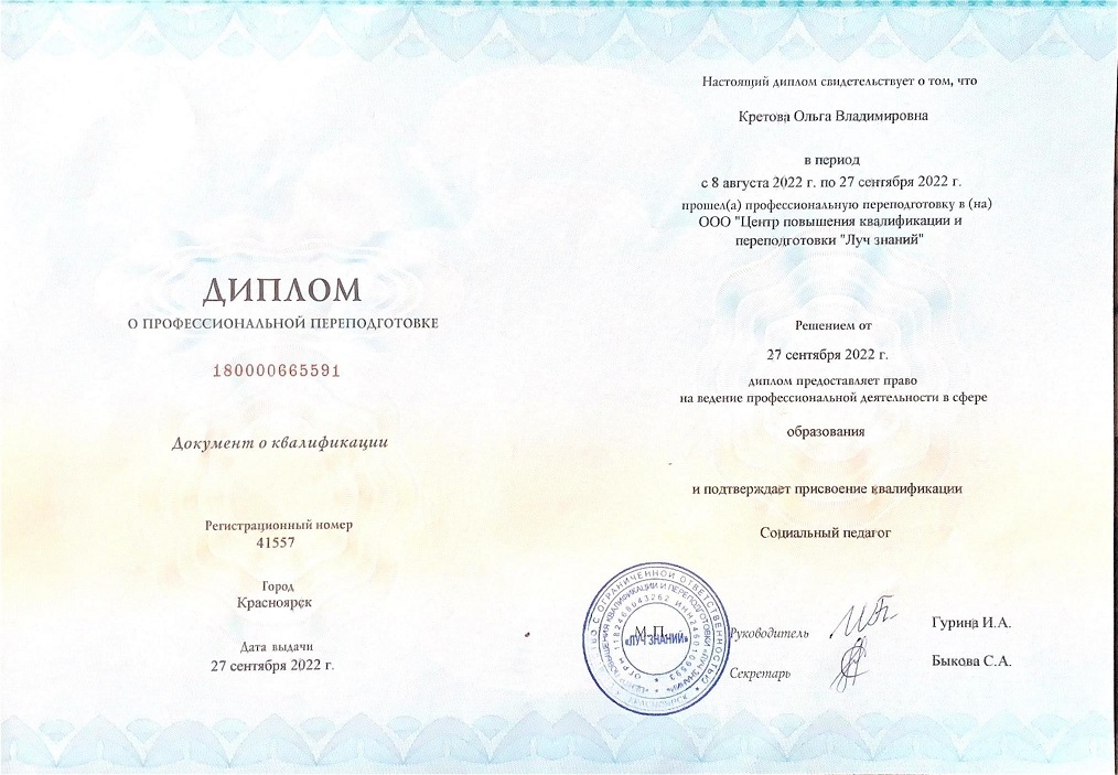 Воспитатель приемного отделения Кретова Ольга Владимировна